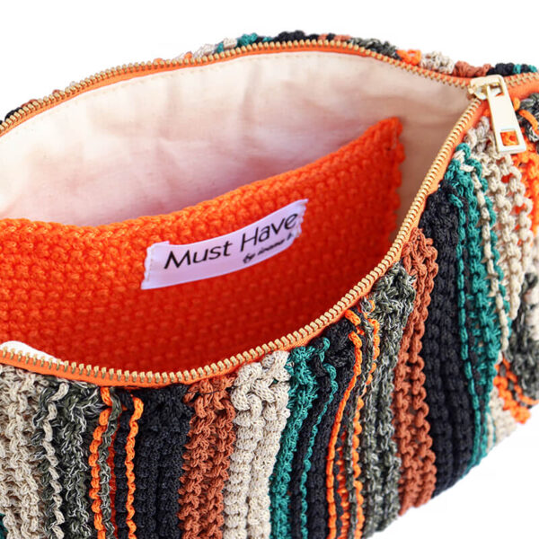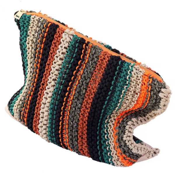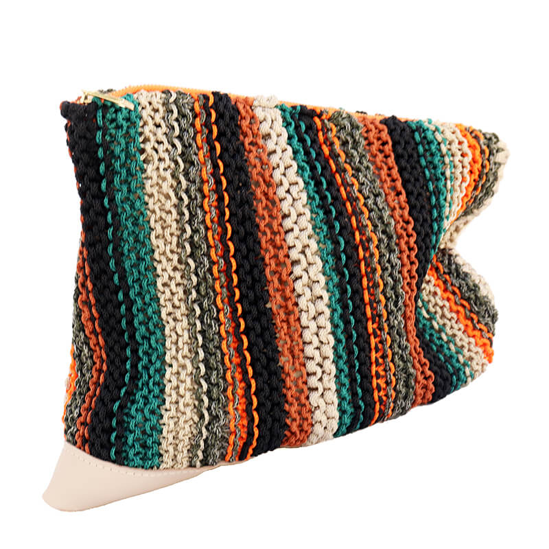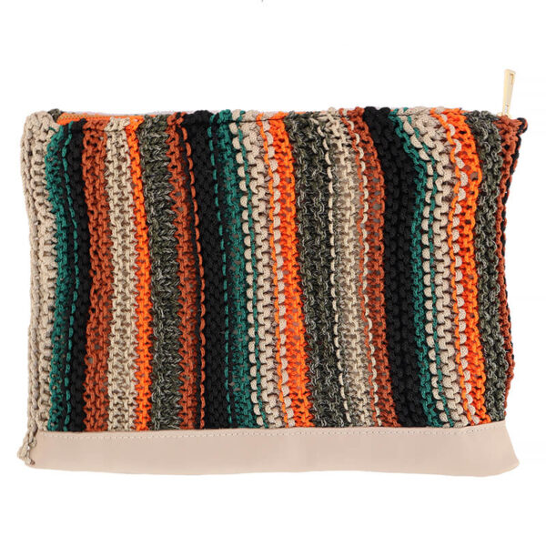 LANDSCAPE clutch bag is an knitting bag made of leather and polyester. The earthy colors make it easy to wear in all cases